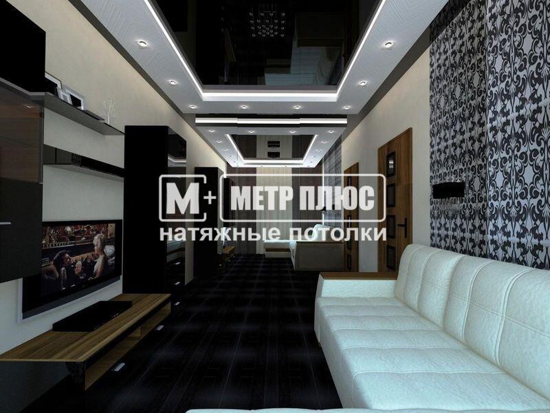 Черный глянцевый потолок способен наполнить атмосферу любого помещение нотками особой неординарности и шика. Его присутствие позволит выгодно подчеркнуть индивидуальность интерьера и отменный вкус владельца помещения. К тому столь глубокий и насыщенный оттенок позволит визуально опустить слишком высокий потолок, придав длинному и узкому пространству более гармоничный внешний вид. Благодаря чему у Вас появится возможность правильно расставить основные акценты, выгодно подчеркнув выбранный стиль и красоту отделки данного помещения. При этом стоит отметить, что черный тон, так же как и белый, считается универсальным оттенком, с которым отлично сочетается большинство оттенков существующей цветовой гаммы.